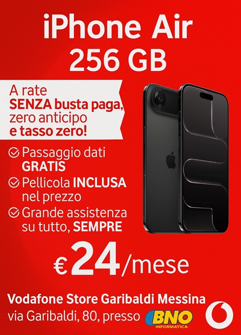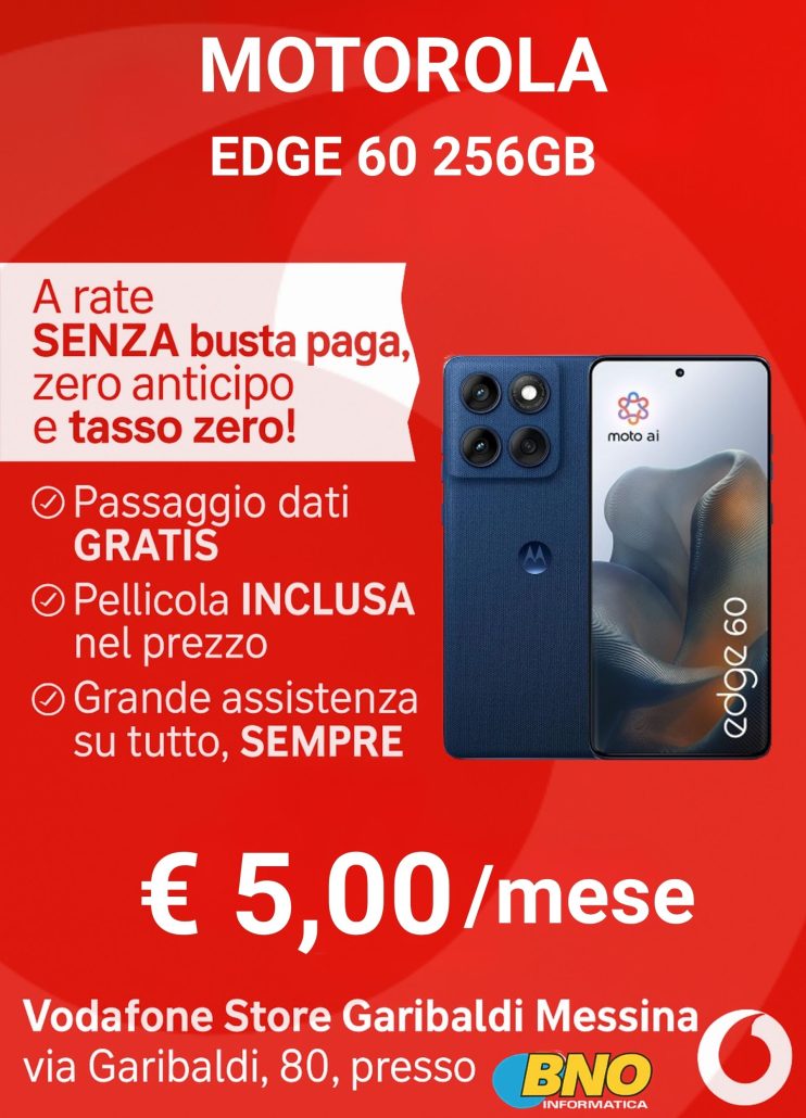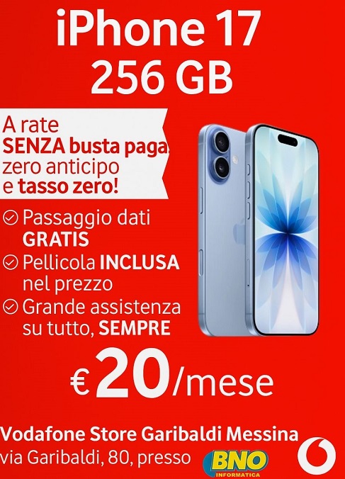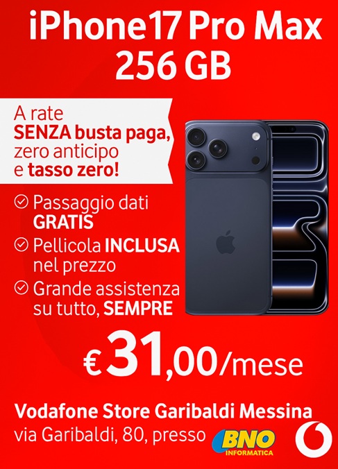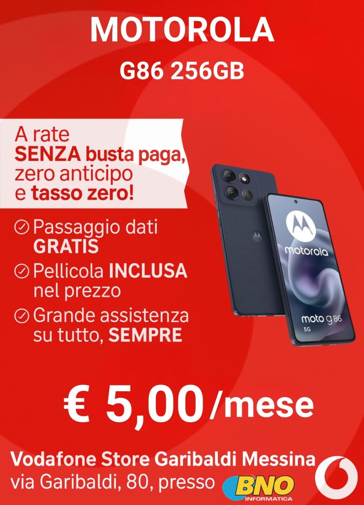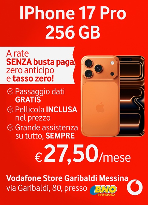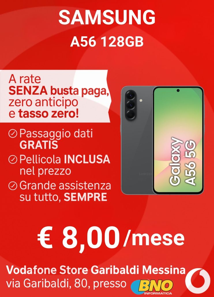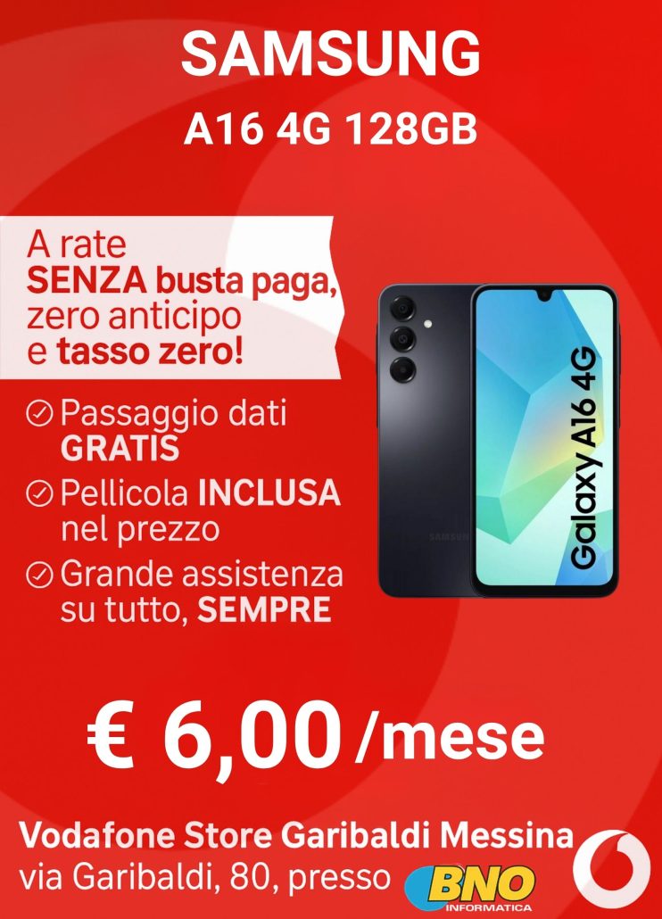 Da Vodafone Store Garibaldi Messina, puoi trovare smartphone Samsung, Xiaomi, Oppo, Motorola e iPhone, con promozioni valide anche senza busta paga, sia in combinazione con SIM Vodafone che come acquisto diretto.